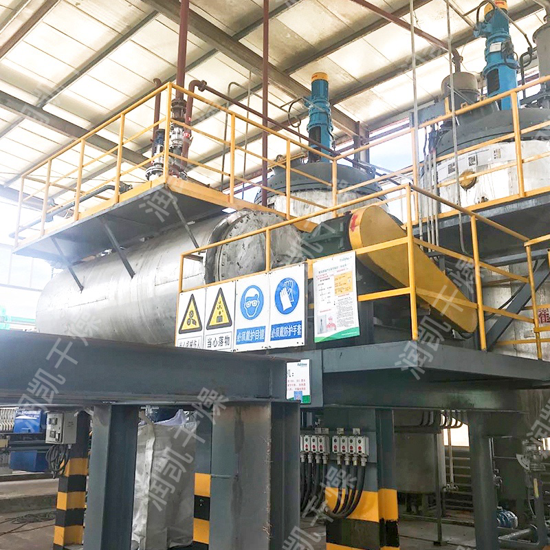 熱能利用率高,能耗低,裝料量可達(dá)筒體體積的70~80%,由于間接加熱,沒(méi)有大量攜帶空氣帶走熱量,干燥器外壁又設(shè)置保溫層,蒸發(fā)1kg水僅需1.2kg水蒸氣。